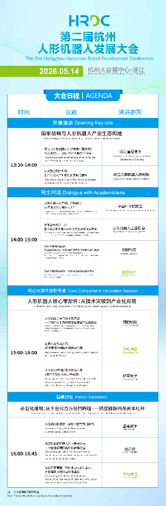 回顾2025年首届大会,围绕技术前沿、产业政策、解决方案与关键部件等议题开展了深入探讨,汇聚了来自学术界、产业界与研究机构的专家智慧,为行业发展奠定了坚实基础。在此推动下,浙江省积极响应国家《人形机器人创新发展指导意见》,持续出台地方支持政策;产业应用方面,本土企业如宇树科技等在工业、服务等场景的落地案例不断丰富;资本市场热度不减,2025年浙江省机器人领域融资规模占全国20%以上。